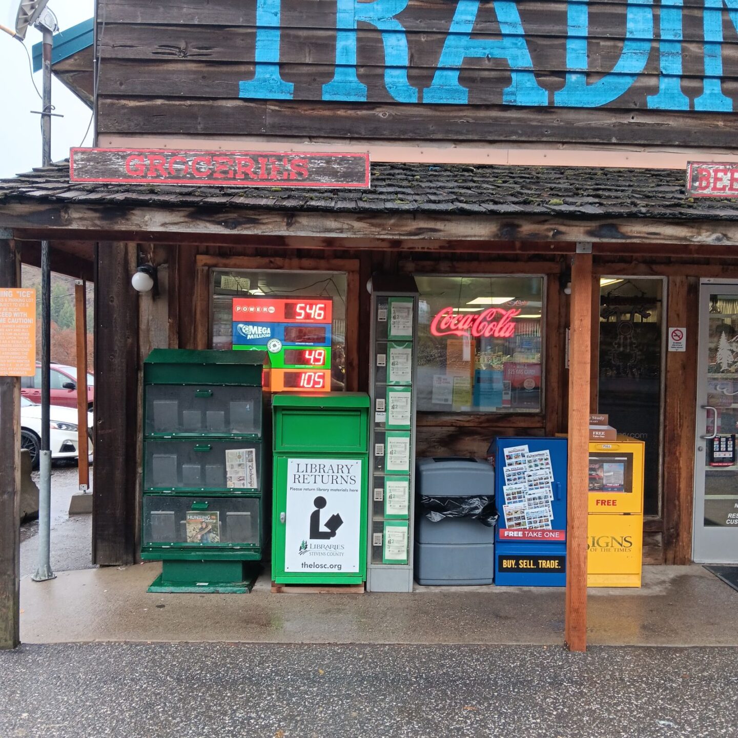 Located in front of the Old Schoolhouse Trading Post at 1372 North St, Addy, WA 99101