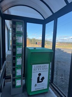 Located at the entrance of library at 4008 Cedar Street, Loon Lake, WA 99148